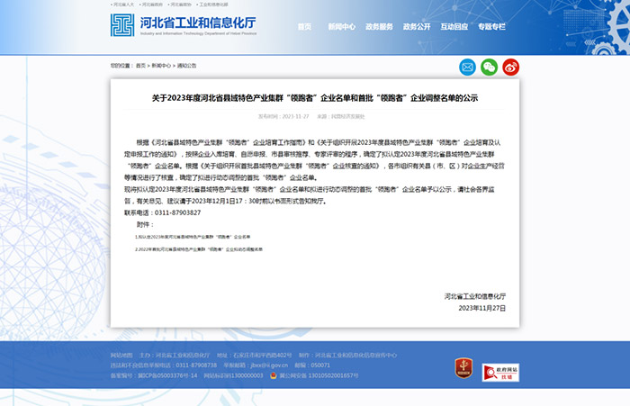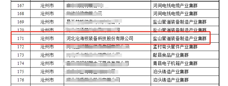 近日,河北省工業(yè)和信息化廳公示了2023年度河北省縣域特色產業(yè)集群“領跑者”企業(yè)名單和首批“領跑者”企業(yè)調整名單。河北滄海核裝備科技股份有限公司榮幸入選其中,成為獲得這一殊榮的企業(yè)之一。